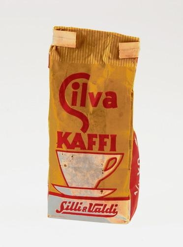 kaffi frá Silla & Valda. Pokinn er gulur, rauður og hvítur að lit.