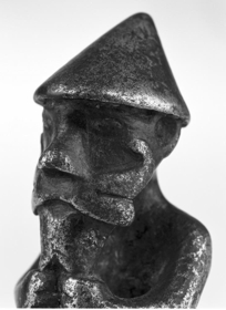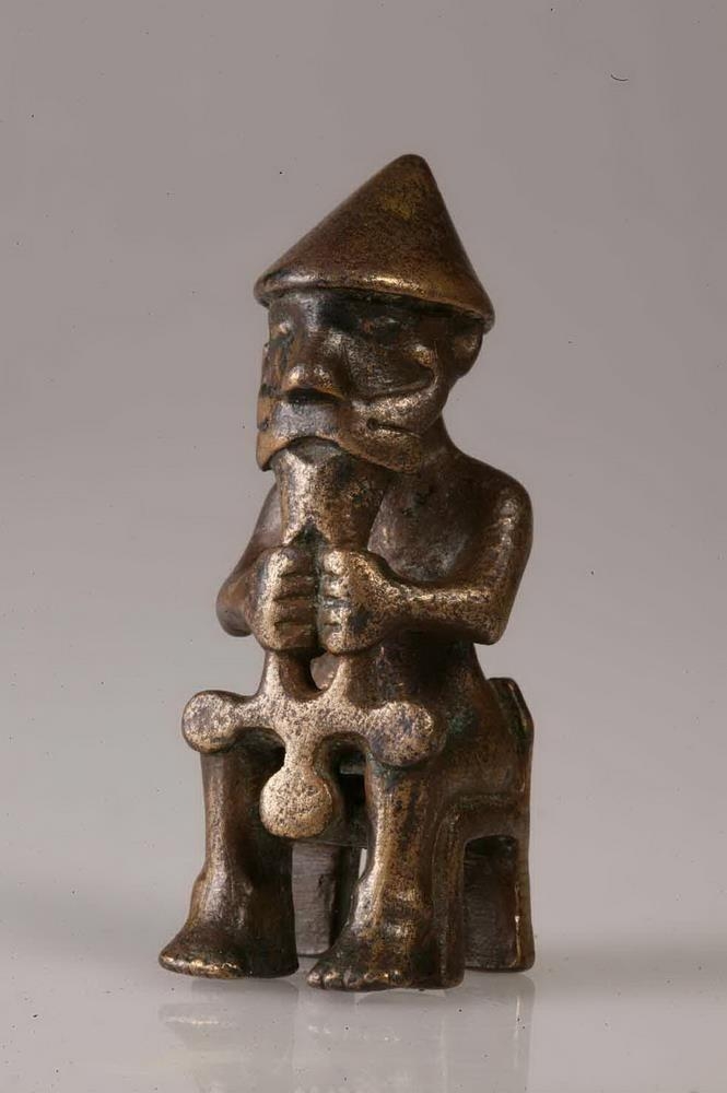 Þórslíkneskið, mannslíkan úr bronsi. Ákveðin stílein-