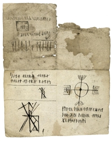 [þetta á augljóslega að vera hið fræga "sator arepo" en er hér með allnokkrum stafsetningarvillum]
