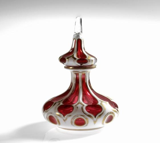 bryggjum um stútinn, tappinn er úr gleri, hár með hnappi að ofan, hann