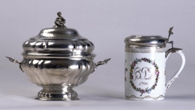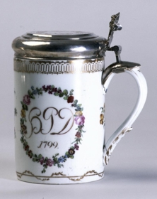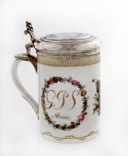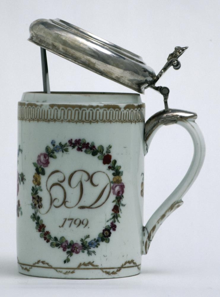 Postulínskanna, ölkanna, dönsk með silfurloki. Á könnunni eru fangamörk Guðmundar Péturssonar sýslumanns í Krossavík í Vopnafirði og Þórunnar Guðmundsdóttur konu hans og ártal 1799 með blómakrönsum umhverfis. Lokið er smíðað af Sigurði Þorsteinssyni gulls