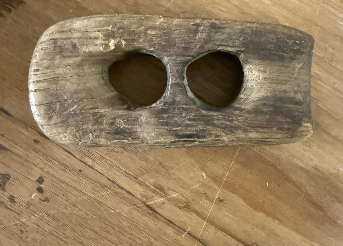 Reiphögld, tvígata, smíðuð úr eik. Annarsvegar merkt Helga Pálssyni bónda í Seljalandi (H.P.), hinsvegar afa hans, Bjarna Bjarnasyni bónda í Hörgsdal (B.B).