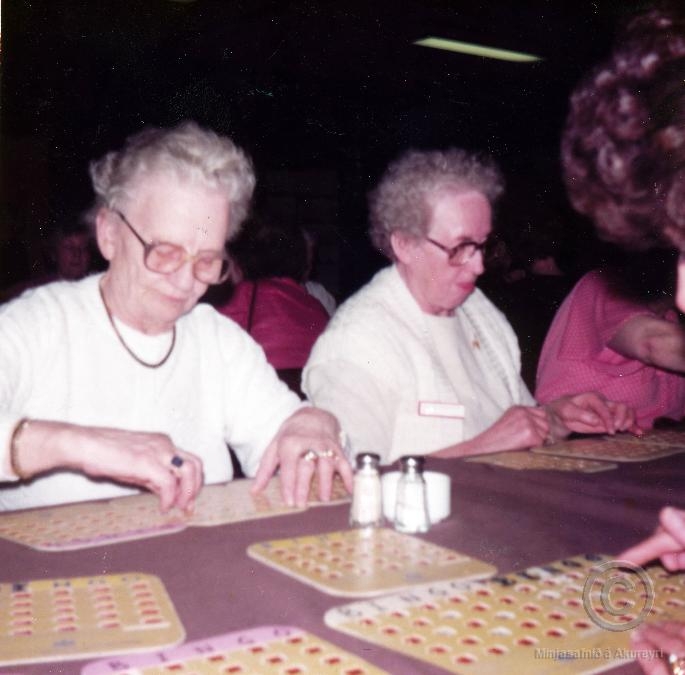 Ingibjörg með mákonu sinni Sigurveigu áður hjá Happdrætti Háskólans, Geislagötu, Akureyri í orlofsferð húsmæðra á Hvanneyri 1985-1990