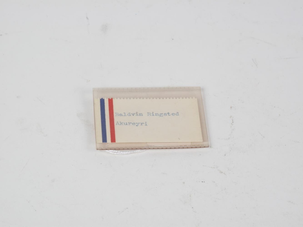 Nafnspjald, merkt Baldvini Ringstedt tannlækni á Akureyri.