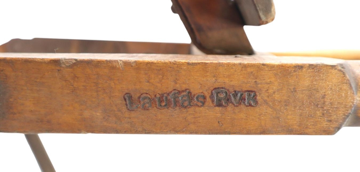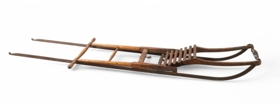 Skíðasleði, merktur "NORRONA" og einnig ígrafið í tré: "Laufás Rvk". Hægt er að leggja sleðann saman.