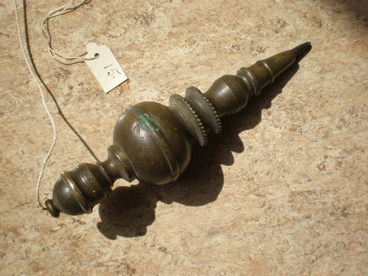 Lóð til að taka lóðrétt með við húsasmíðar .Lengd 14 cm, úr messing með járnbroddi. Það er merkt J.V.R. 1835. Þetta er vandaður gripur, stendur í aðfangaskrá.