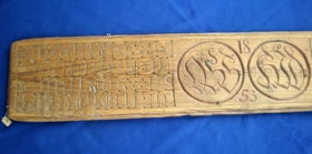Fjölin er 103 cm á lengd og 18 cm á breidd. Í miðju eru skornir tveir hringir með stöfunum O.S.S. og H.J.D., sem eru fangamörk hjónanna Odds Sigurðssonar og Höllu Jónsdóttur. Á milli hringjanna er ártalið 1853 . Til endanna er skorið með höfðaletri: „Guð gefi oss góðar nætur / Guð hjálpi oss vel á fætur / Á hann vér setjum traust og trú/ trigð ( sbr.aðf.skrá) hans felum oss allir nú “.
