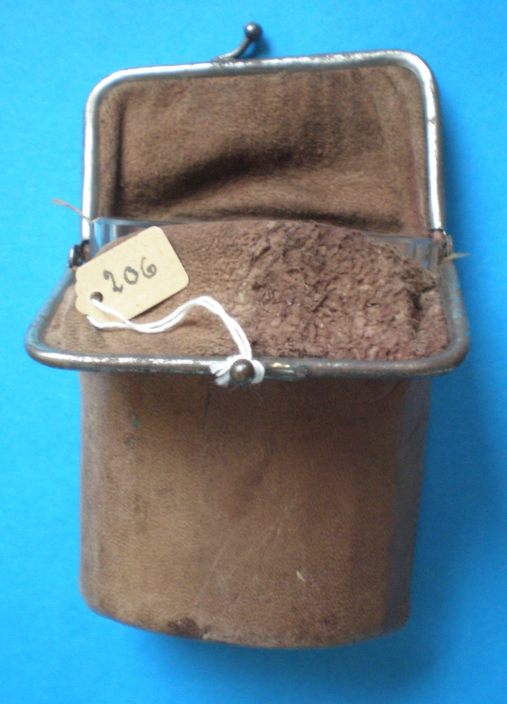 Þetta er „sett“ í leðurhylki og samanstendur af sjálfskeiðungi og glasi. Þetta ferðasett var eign Péturs Bjarnasonar á Grund.
