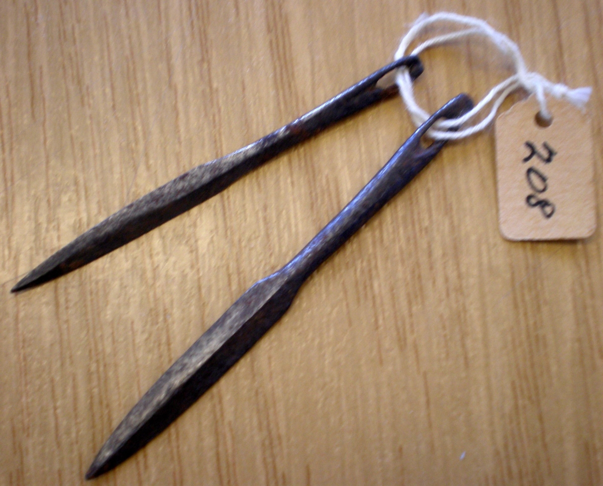Nálarnar eru tvær, skónálar og óvenju stórar.