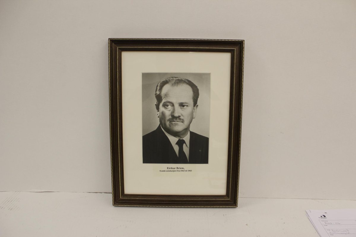 Í viðarramma með gleri. Portrett. Eiríkur Briem. Framkvæmdarstjóri frá 1965 til 1983. Fæddur 3 nóv. 1915. Dáinn 17. feb. 1989.