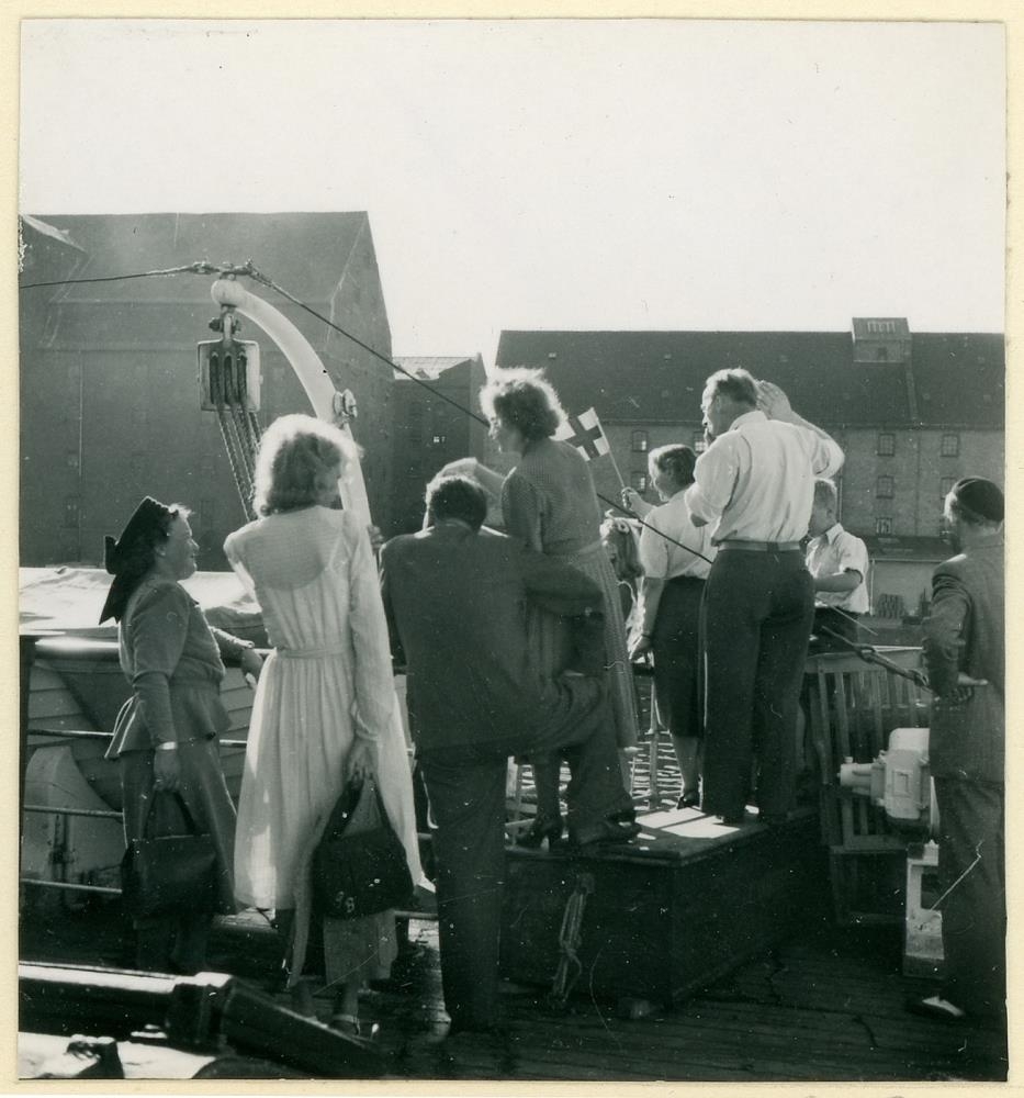 Fólk uppi á dekki skipsins Dronning Alexandrine e/s.