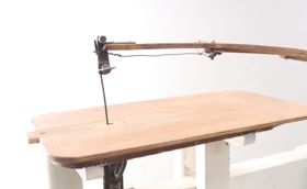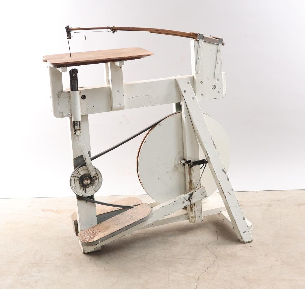 Axel Helgason módelsmiður notaði sögina, fyrst hjá Húsameistara ríkisins, Guðjóni Samúelssyni, en þar starfaði Axel frá 1929 til 1941, og síðan hjá Húsameistara Reykjavíkurborgar, Einari Sveinssyni frá 1941 til 1988. Axel var lærður húsasmiður en sérhæfði sig í módelsmíði og vann við það nánast alla sína starfsævi. Vélin var smíðuð af Pétri Símonarsyni frá Vatnskoti í Þingvallasveit árið 1942 og kostaði 35 krónur. Hún var smíðuð eftir danskri fyrirmynd. Sögin er úr tré að mestu, fótstigin og hvítmáluð.