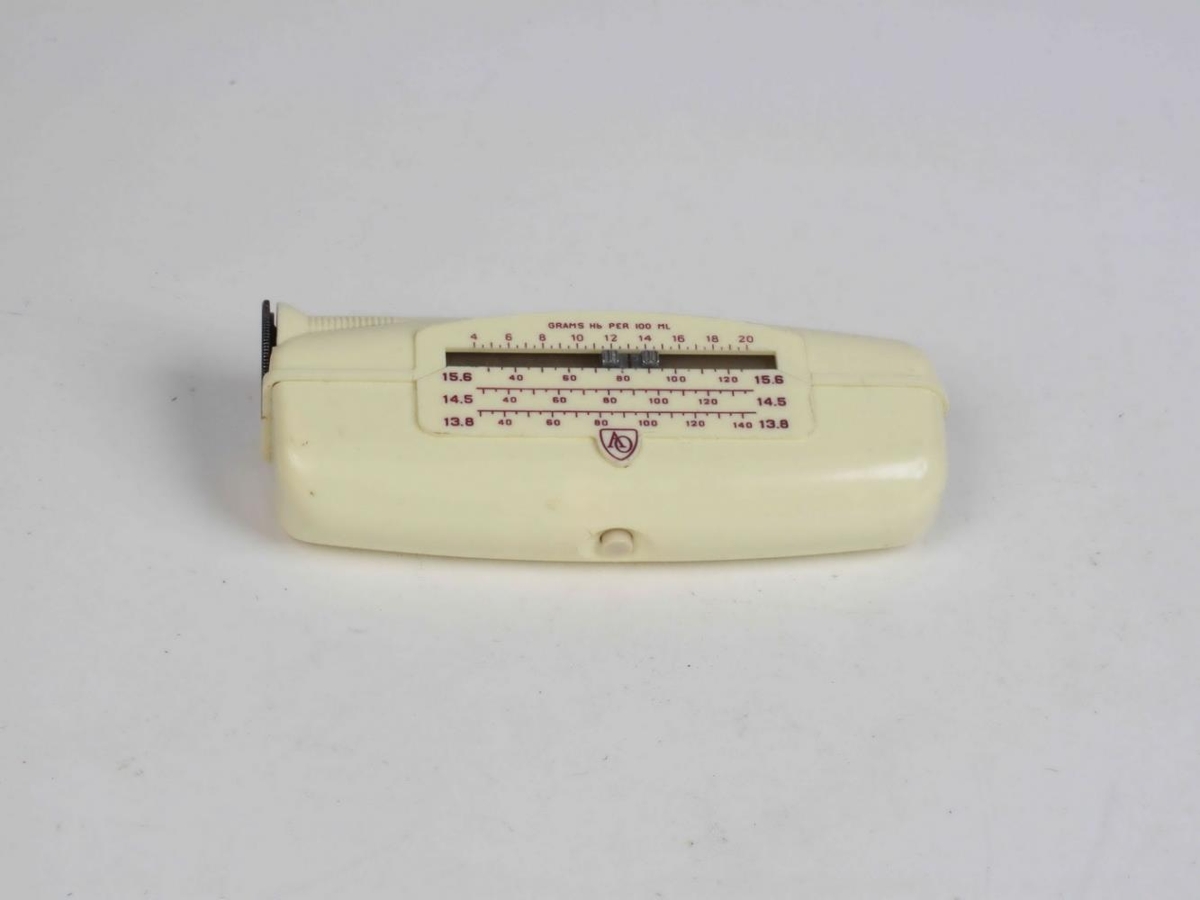 Blómælir Spenser's, í rjómalituðu plasthylki, 17 x 5 x 3,5 sm, merktu "SPENCER" ... og Hb skala. Ásamt leiðavísi.