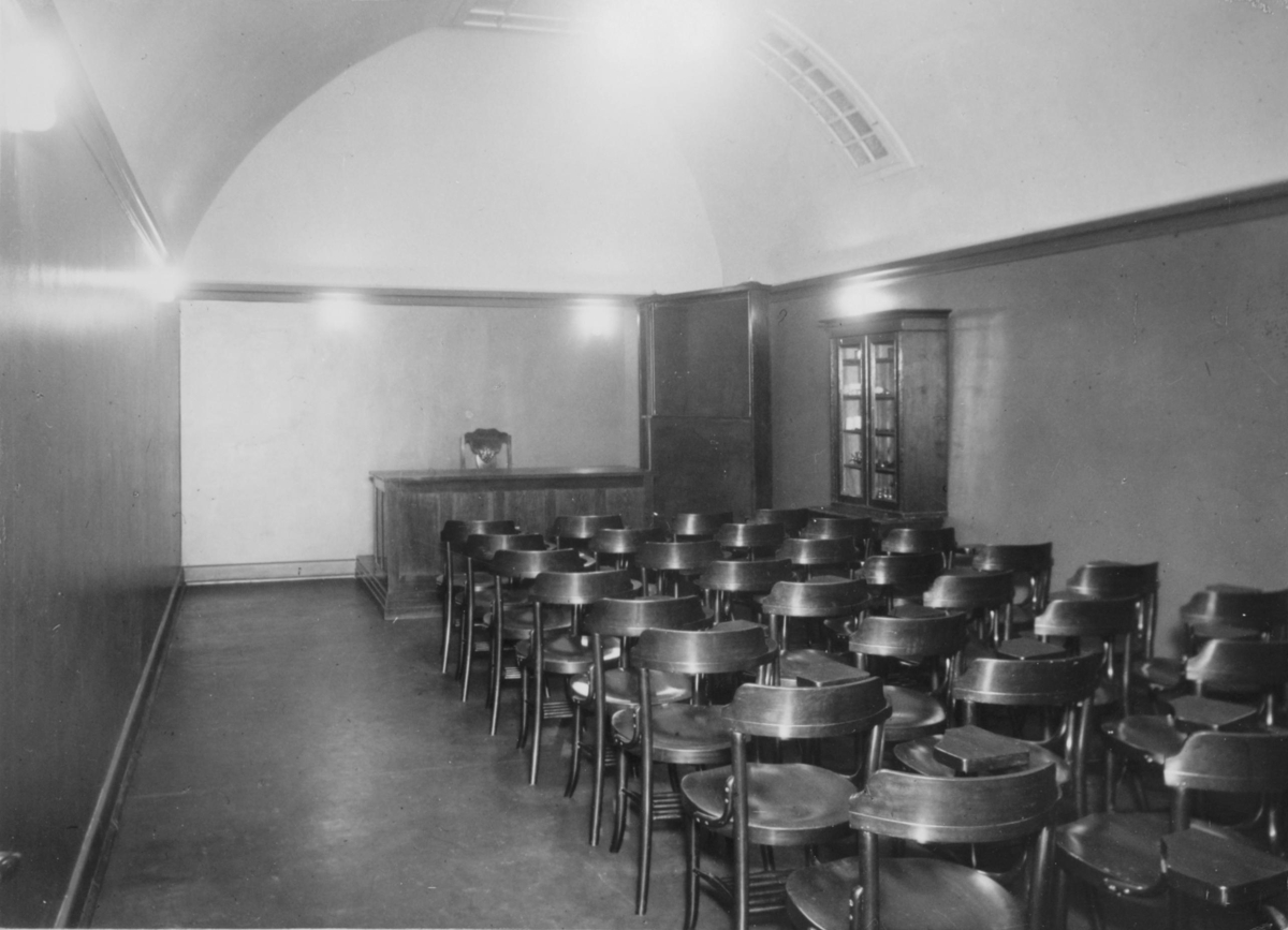 Stóll úr fyrirlestar- og kennslustofu frá upphafsárum Landspítalans. Hægra megin er armur og á honum er lítið borð fyrir glósubók, enginn armur er vinstra megin á stólnum. Sá sem ætlar að setjast á stólinn þarf að smeygja sér undir armborðið. Stóllinn er brúnsbæsaður. Talan 24 hefur verið slegin inn í viðinn undir setunni. Þar er einnig festur miði sem nú er aðeins rifinn. Þar stendur: HONET. Einnig glittir í einn staf þar fyrir framan sem hefur verið T, sbr. Michale THONET (1796-1871) sem hannaði stóla með sérstakri pressu tækni sem mótaði viðinn. Stólarnir, sá þekktasti er kallaður Chair No. 14, eru byggðir upp af einingum og voru fjöldaframleiddir. Óvíst hversu margir stólarnir voru í upphafi . Listmuna- og minjanefnd Landspítalans varðveitir tvo stóla. Þar er til mynd af fyrirlestrarsalnum og á henni sést m.a. að stólarnir voru upphaflega XX að tölu. Þegar hætt var að nota stólana í tengslum við kennslu þá fór stólunum að fækka. Því tók Grétar Ólafsson skurðlæknir þenna stól til varðveislu. Grétar lét herða upp og laga stólinn.