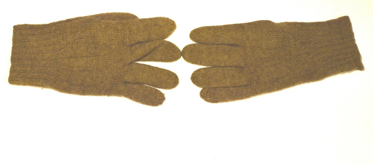 Mórauðir fingravettlingar. Óvíst hver prjónaði.