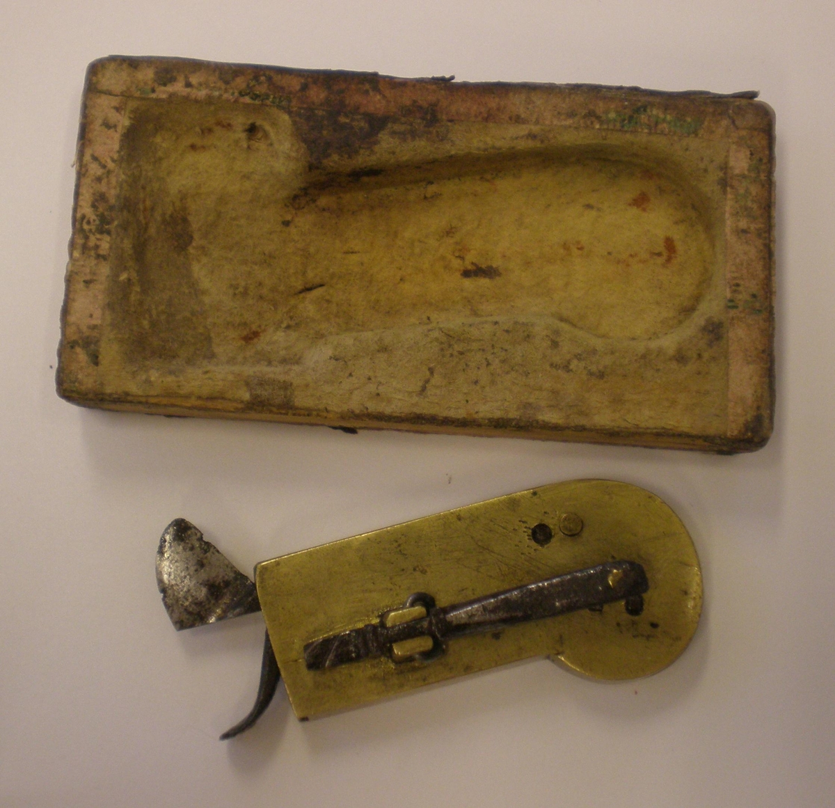 Bíldur, lítið verkfæri 5 cm að lengd til blóðtöku. Var eign Andrésar Fjeldsted, Ferjukoti.