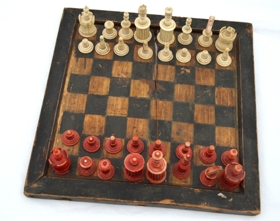 Taflmenn úr fílabeini hvítir og rauðir, og taflaskja. Átt hefur Skúli Thorarensen læknir á Móeiðarhvoli f. 23.3.1805 d. 1.4.1872. Eftir hann fékk taflið Guðjón Jónsson frá Fljótsdal sem lengi var fylgdarmaður hans í læknisferðum. Síðan átti það Ágúst Jónsson bróðir hans. Gjöf frá Nóa Kristjánssyni 17.10. 1956.