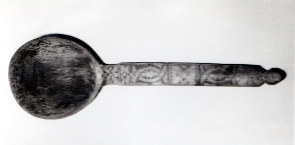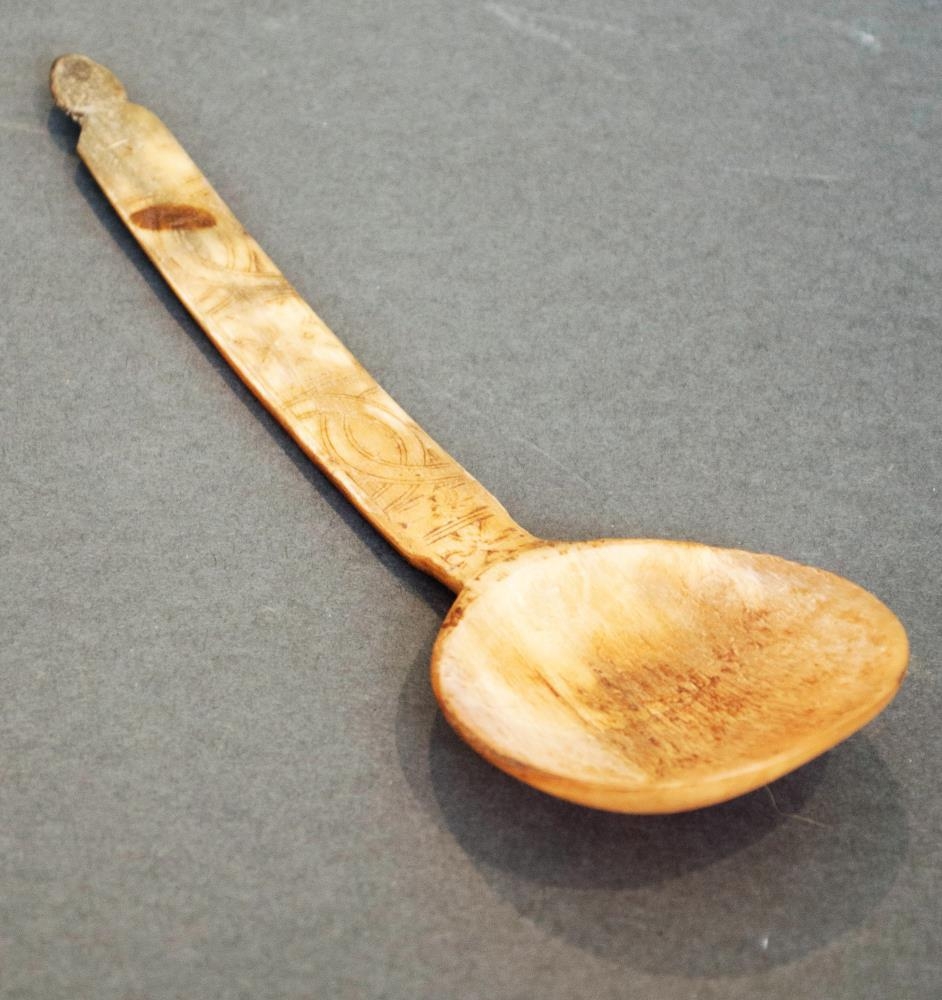 Hornspónn = 18 cm. Útskorinn að framan. Átt hefir Beinteinn Ingimundarson lögréttumaður f. 1731 d. 1811, bjó í Þorlákshöfn og síðan að Breiðabólsstað í Ölfusi. Spóninn gaf mér Páll Sigurðsson í Árkvörn, er hann úr búi Páls alþm. Sigurðssonar í Árkvörn, kona hans Þuríður Þórðardóttir var dótturdóttir Beinteins.