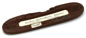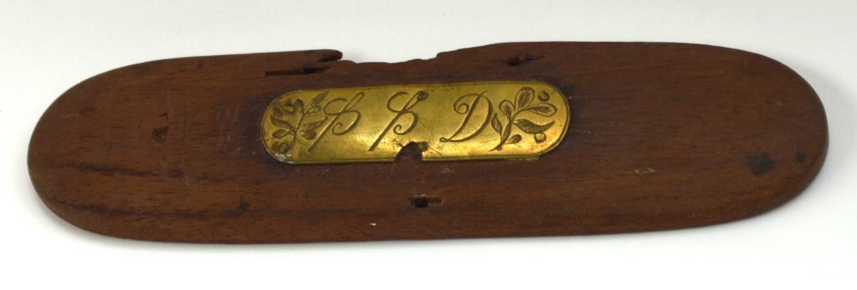 Lok af gleraugnahúsi, um 16 cm úr rauðviði, á því er látúnsskjöldur ágrafinn með jurtaskrauti og Þ.Þ.D.. Átt hefir húsfreyjan í Árkvörn Þuríður Þórðardóttir f. 1.8.1850, d. 11.6.1900. Gjöf frá Páli Sigurðssyni bónda Árkvörn. 15.9.1956