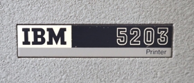 IBM 5203 Printer, stór tölvuprentari á hjólum. Rauður og ljósgrár á litinn, úr járni að mestu leiti og er því afar þungur. Prentaranum fylgja 7 möppur með leiðbeiningum og gögnum.