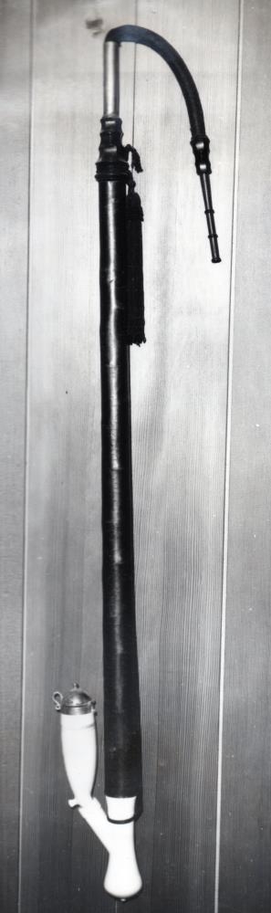 Reykjapípa 132 cm. Átt hefur prófasturinn séra Skúli Gíslason á Breiðabólsstað Fljótshlíð. Pípuna fann ég í mörgum pörtum uppi á kirkjulofti á Breiðabólsstað. Sr. Sveinbjörn Högnason prófastur gaf mér hana, og fullyrti að sr. Skúli hafi átt hana. Frú Guðbjörg Þorleifsdóttir í Múlakoti sagði þegar hún sá hana, þessari pípu man ég eftir hjá prófastinum á staðnum þegar ég fermdist.