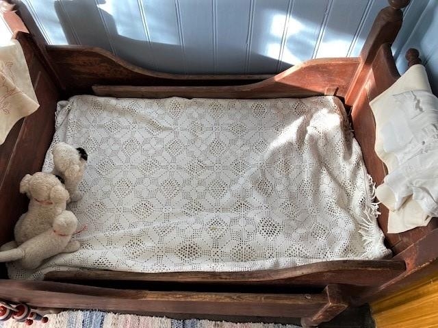 Rúmábreiða svokallað "dúlluteppi" sem samanstendur af mörgum ferköntuðum hekluðum dúllum, 15x15 cm, sem síðan eru heklaðar saman og kantur heklaður. Frá um 1910. Gert af Þórunni Blöndal Níelsen ömmu gefanda.