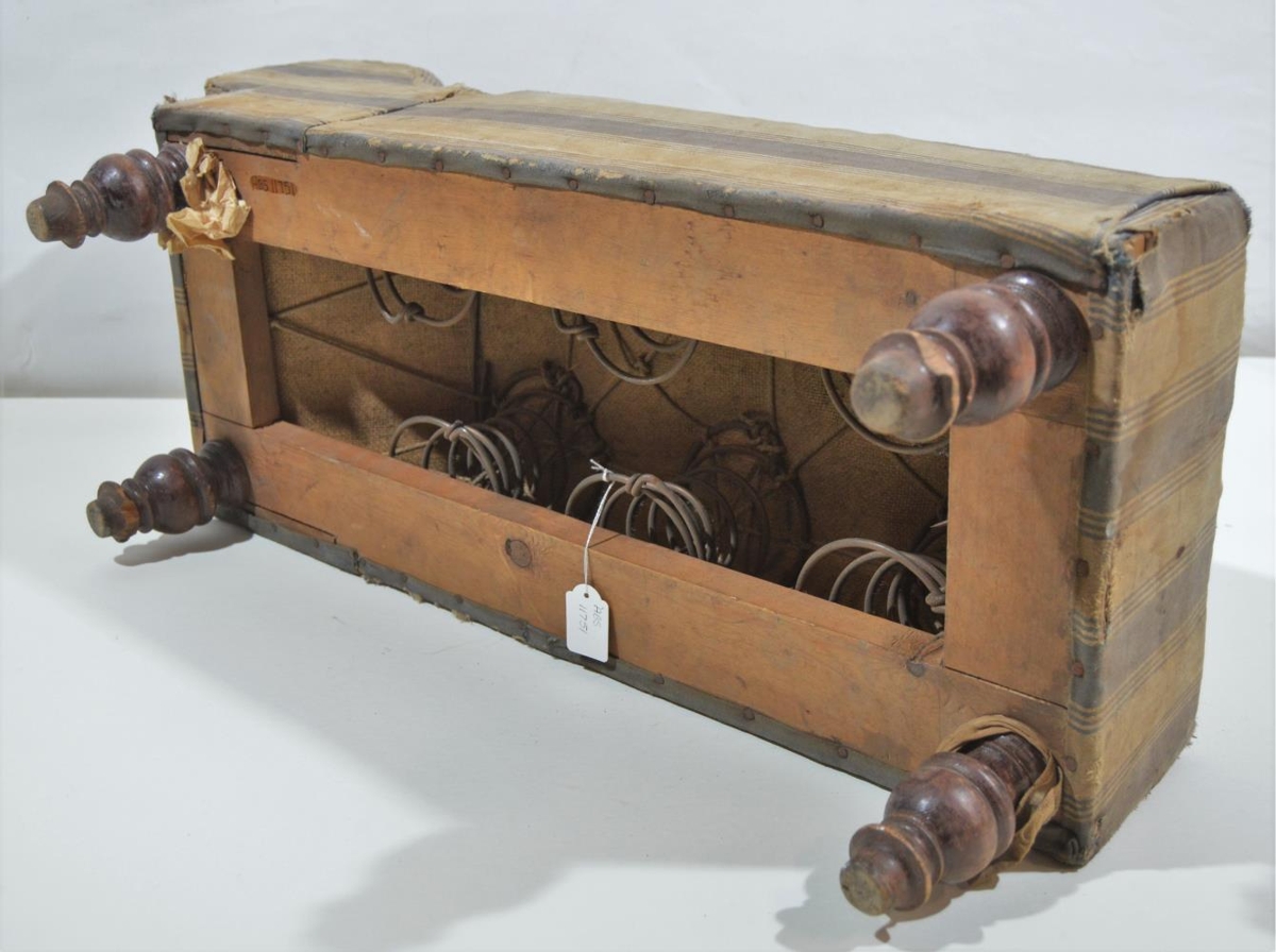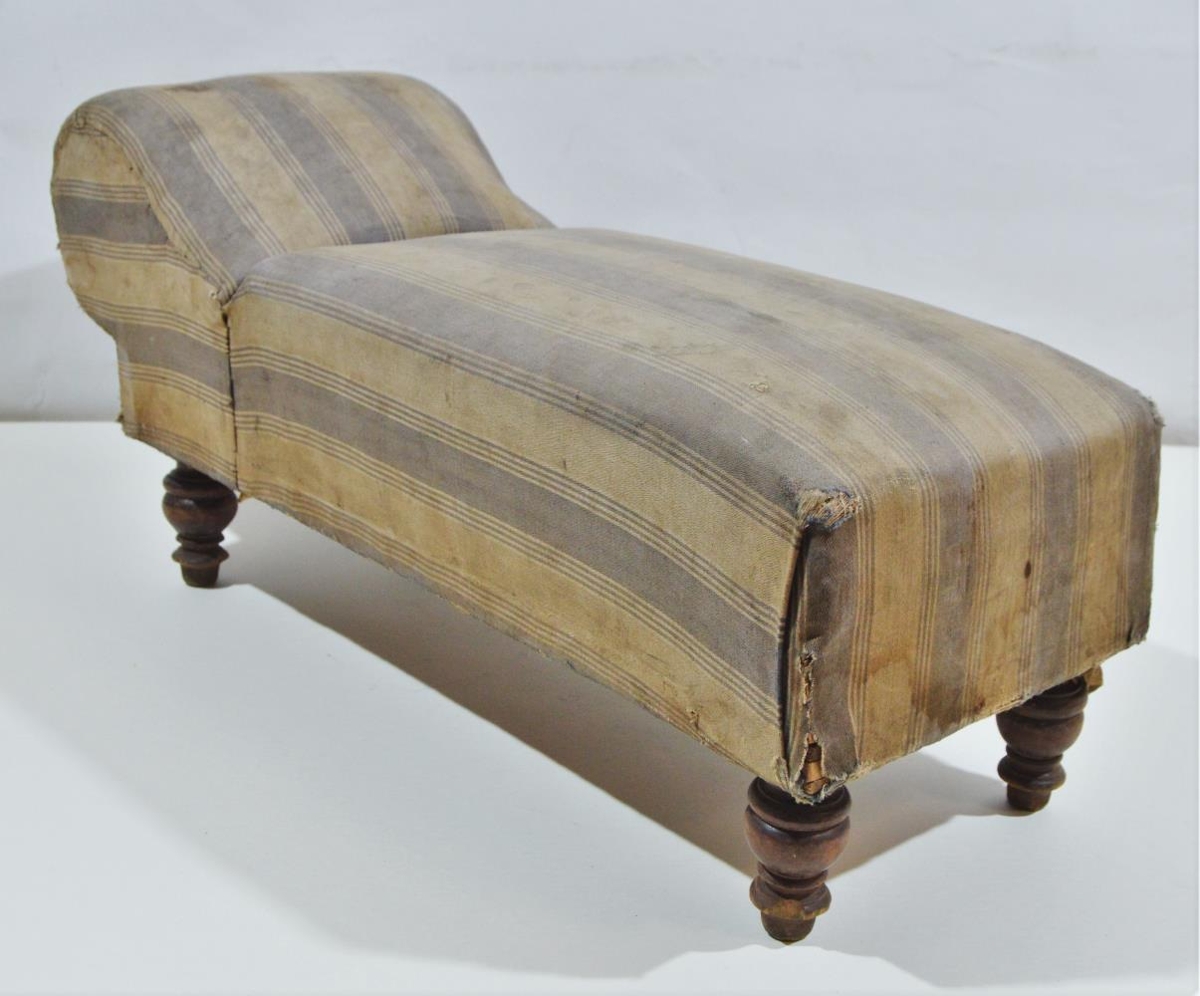 Dúkkuhausdívan. Dívan klæddur röndóttu áklæði. Höfuðpúði upphækkaður. Fæturnir úr renndu tré. Dívaninn er bólstraðu og gormar inní.