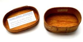 Smjöraskja, lengd 14 cm, breidd 9 cm, úr eigu Þórðar Ólafssonar bónda að Börmum Reykhólasveit, gefin mér (H.Ó.) af Ólafi Þorlákssyni að Börmum. 12.9. 1964.