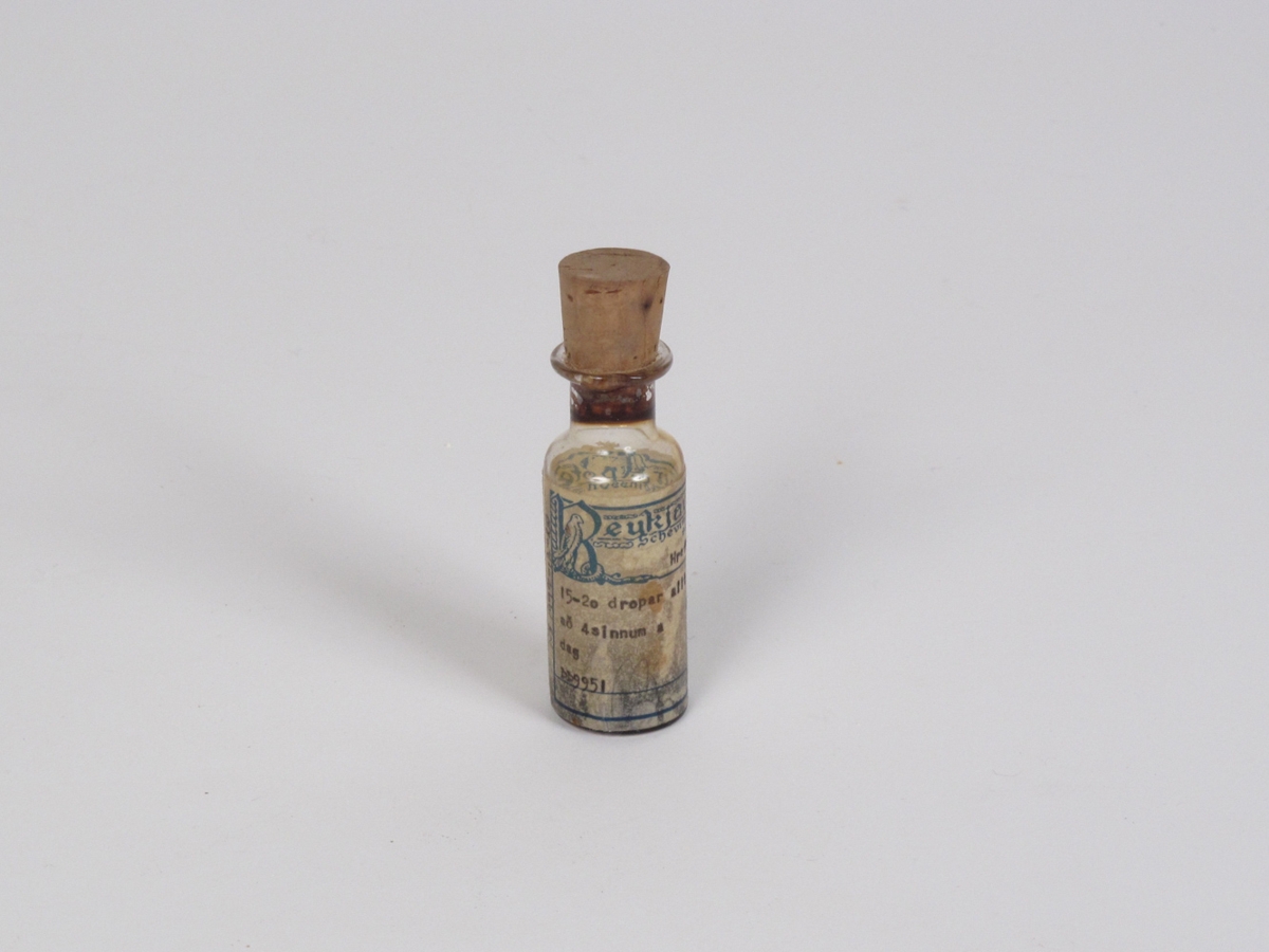 Gutt. tertrapon dropar. í lyfjaglasi frá Reykjarvíkurapóteki merktu Hrefnu Jóhanssdóttur. Kom ásamt öðrum gripum úr fórum Árna Helgasonar læknis en hann var eiginmaður Hrefnu.
