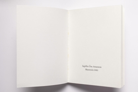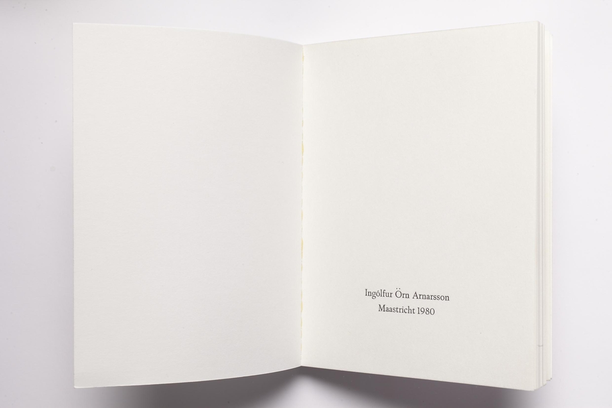 The artist’s book consists near invisible drawings by Ingólfur Arnarsson. The book is 48 unnumbered pages in black print on matte paper. The work is in case binding with a soft cover. The images are printed on one side of each page. The artist’s book was published in 1980 in 100 numbered and signed copies.