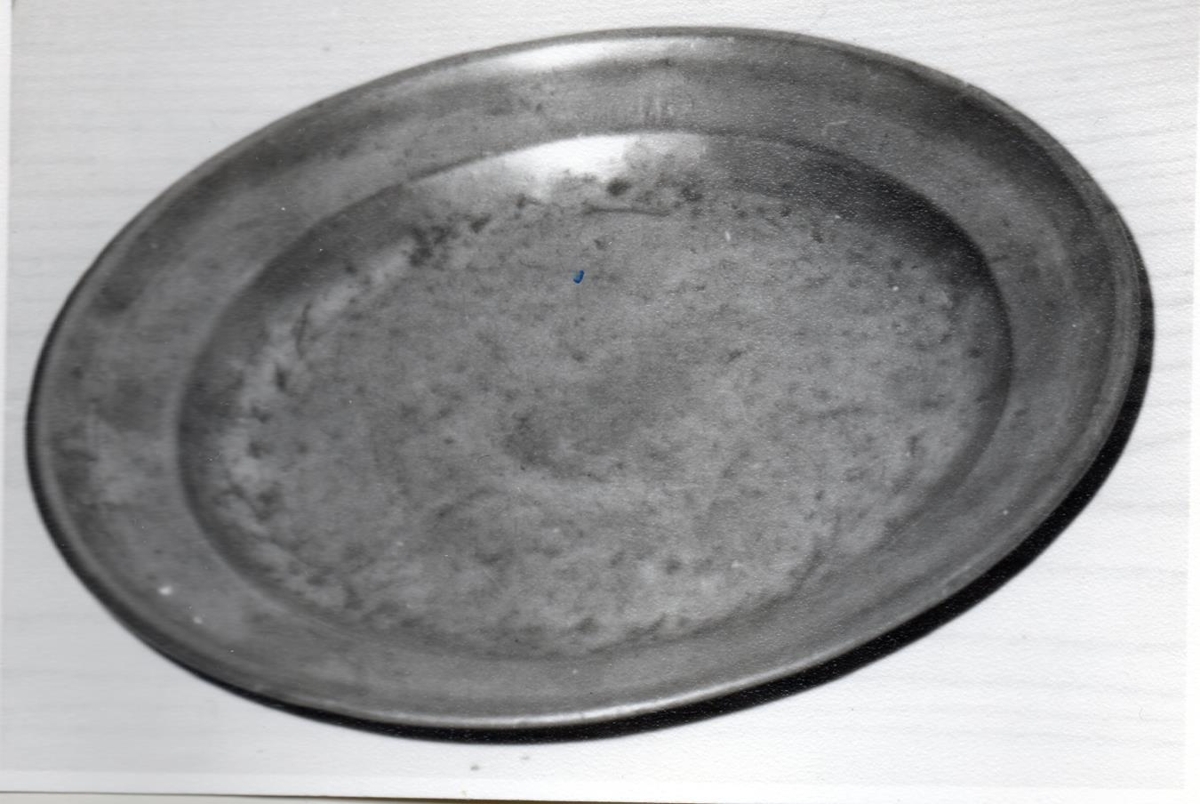 Tindiskur. Þvermál 22 cm. Á barmi disksins er merki Kaupmannahafnarborgar, þrír turnar, á botni eru tveir hringir og krot. Diskurinn er úr búi Hákonar Jörundssonar á Birnhöfða Borgarfj.