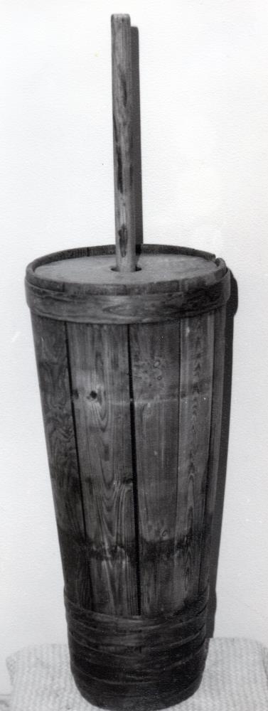 Strokkur frá Börmum í Reykhólasveit. Hæð 62 cm, breidd að ofan 26 cm. Með 6 trégjörðum, vantar þó 3 gjarðir. Átt hefur Þórður Ólafsson bóndi að Börmum. Dóttir hans Ólafía Þórðardóttir f. 1888 gaf mér (H.Ó.) gripinn. 12. sept. 1964.