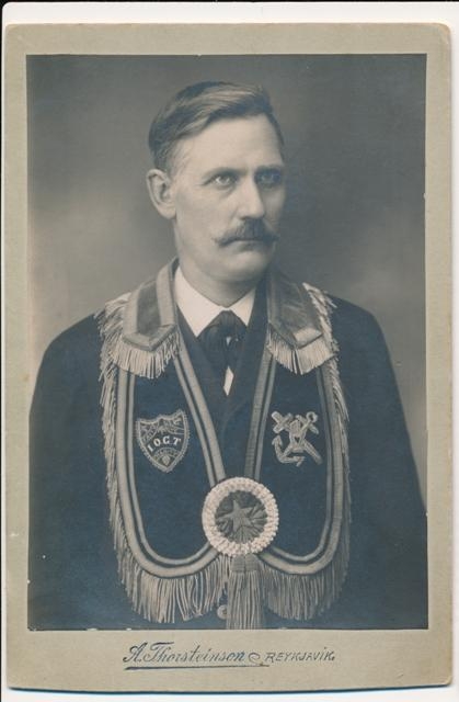 Karlmaður í einkennisbúningi góðtemplara. Sigurður Eiríksson regluboði.