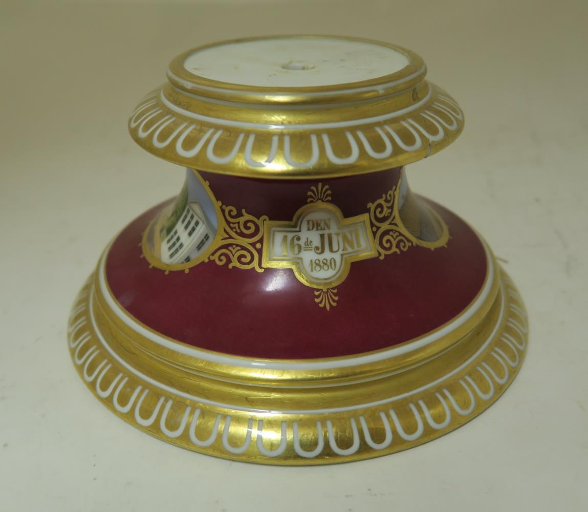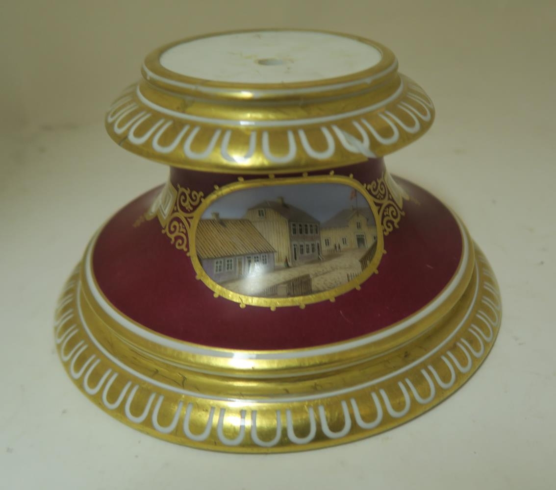 Postulínsfótur, gæti verði undan styttu sem brotnaði eða lampa, og fylgdi ekki með. Á fætinum eru tvær myndir og sýnir önnur þeirra Aðalstræti 2-4 og "Hlið Reykjavíkur"