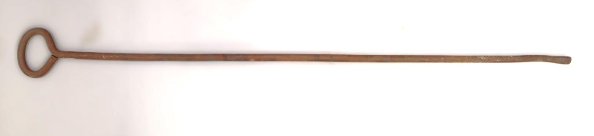 Svipar til skörungsins úr kolaofnasettinu 1994-48 en virðist hafa verið notaður sem járnkarl í garðvinnu.