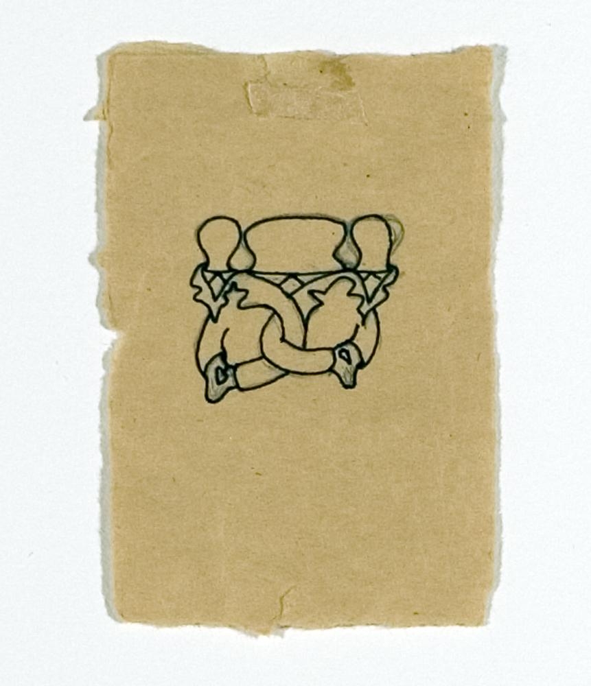 Teikning með svörtum penna og blýanti. Tvíhendisteikning.