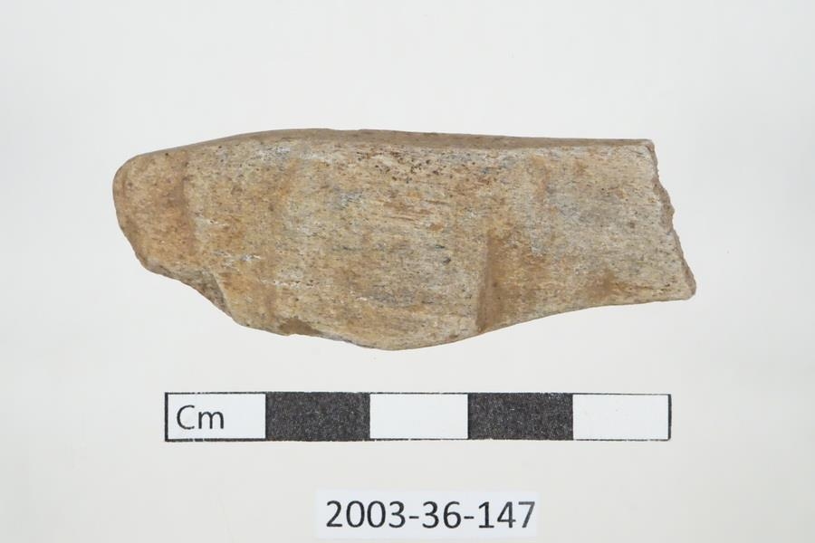 Hluti af þunnu brýni sem hefur verið mikið notað, á því er haus sem haldið hefur verið í þegar hnífar eða verkfæri voru brýnd.