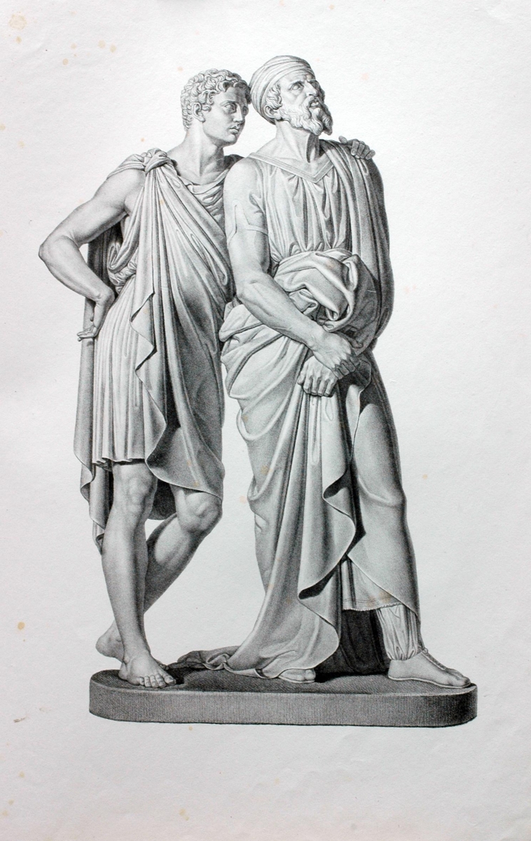 Del af serie litografier, inv.nr. E78a til E78m, udgivet som: "San Giovanni Battista che predica nel deserto. Frontone per una Chiesa di Copenhagen. Composta da Thorwaldsen. Lit. dall'Armi." Roma 1829