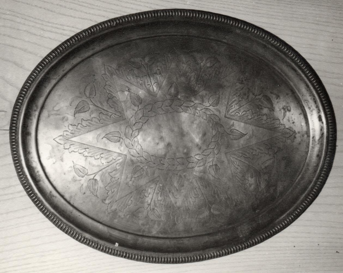 Bollabakki úr kopar (41,5 cm x 31 cm). Átt hefur Pilippus Gunnarsson prestur í Kálfholti, f. 1693 d. 1779, síðan dóttir hans Rannveig kona Bjarna riddara, og hefur verið í ætt þeirra síðan. Síðast átti það Filippus Ámundason járnsmiður í Reykjavík, hann gaf mér 10. janúar 1964.