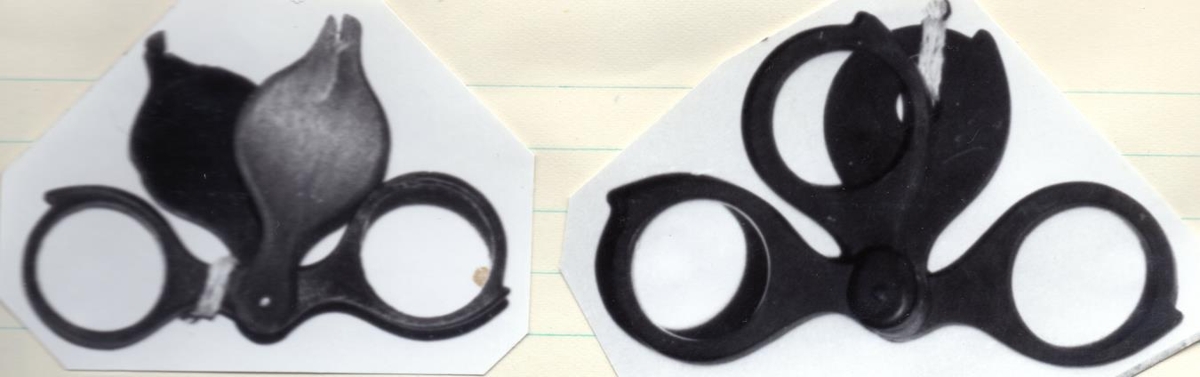 2 gömul vasastækkunargler. Annað með 2 glerjum og umbúnaður úr hvalskíðum. Hitt með 3 glerjum en umbúnaður ekki úr hvalskíðum. Lengd þeirra beggja er um 5 cm. Átt hefur Ágúst Jónsson frá Fljótsdal. Gjöf frá Nóa Kristjánssyni. 17.10. 1956.