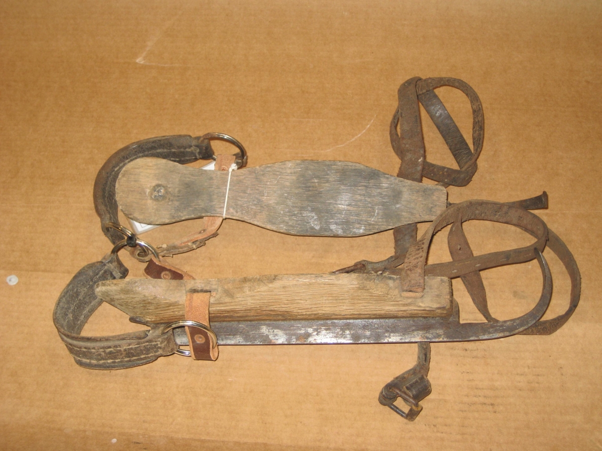 Skautar með leðurólum til að festa við almennan skóbúnað.