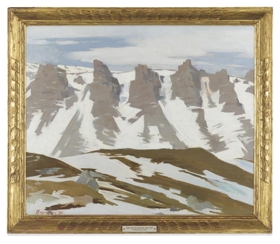 1) The American Federation of Arts. Traveling Exhibition. Titel K. Magnusson. Artist Northern Mountain. Return Adress Bud..th + Son. Price -