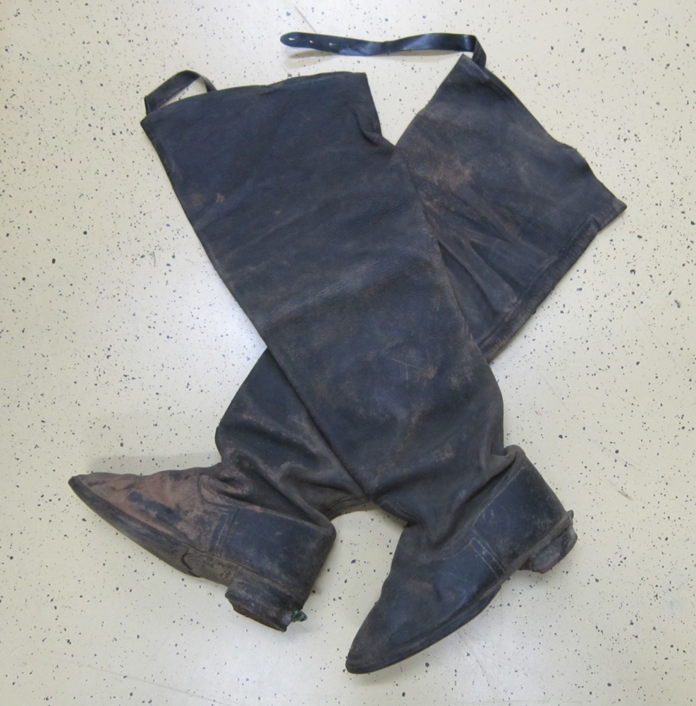 Upphá stór leðurstígvél.