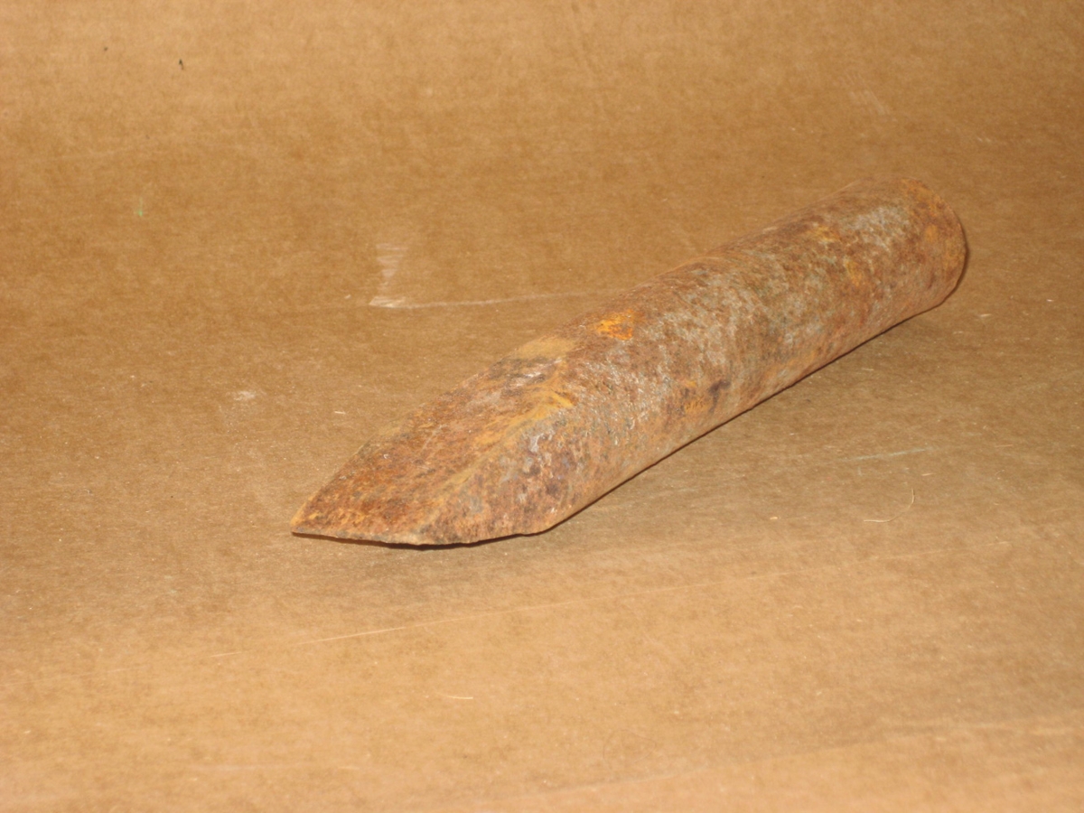 Þungur og veglegur meitill sem tekinn er að ryðga nokkuð.
