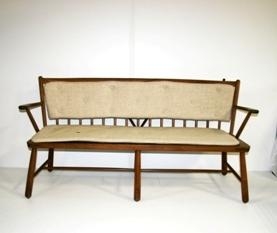 Bekkur með örmum og rimlabaki með lausum sessum úr ljósu ullaráklæði sem er hluti af setti, bekkur, tveir stólar og borð. Húsgögnin eru smíðuð úr mahóní af Herði Rögnvaldssyni handmenntakennara veturna 1953-1955 og voru húsgögnin sem eru einstök gerð undir leiðsögn Sveins Kjarval. ( þessi sería hefur númerin Hs 2005-6, 7-1, 7-2 og 8.