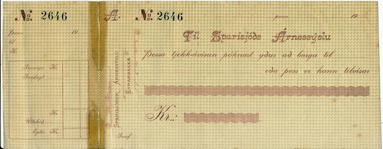 Óútfyllt ávísun til Sparisjóðs Árnessýslu. No 2646