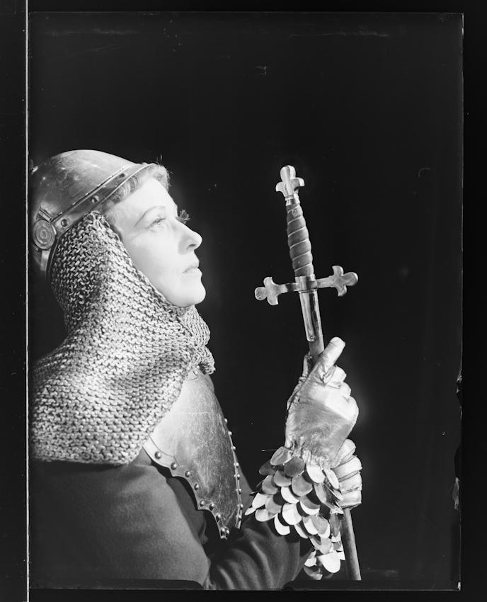 12-7 Jean D‘Arc (frú Anna Borg). Myndin tekin 26. marz 1951 (annan páskadag) eftir sýningu á Heilagri Jóhönnu í Þjóðleikhúsinu.