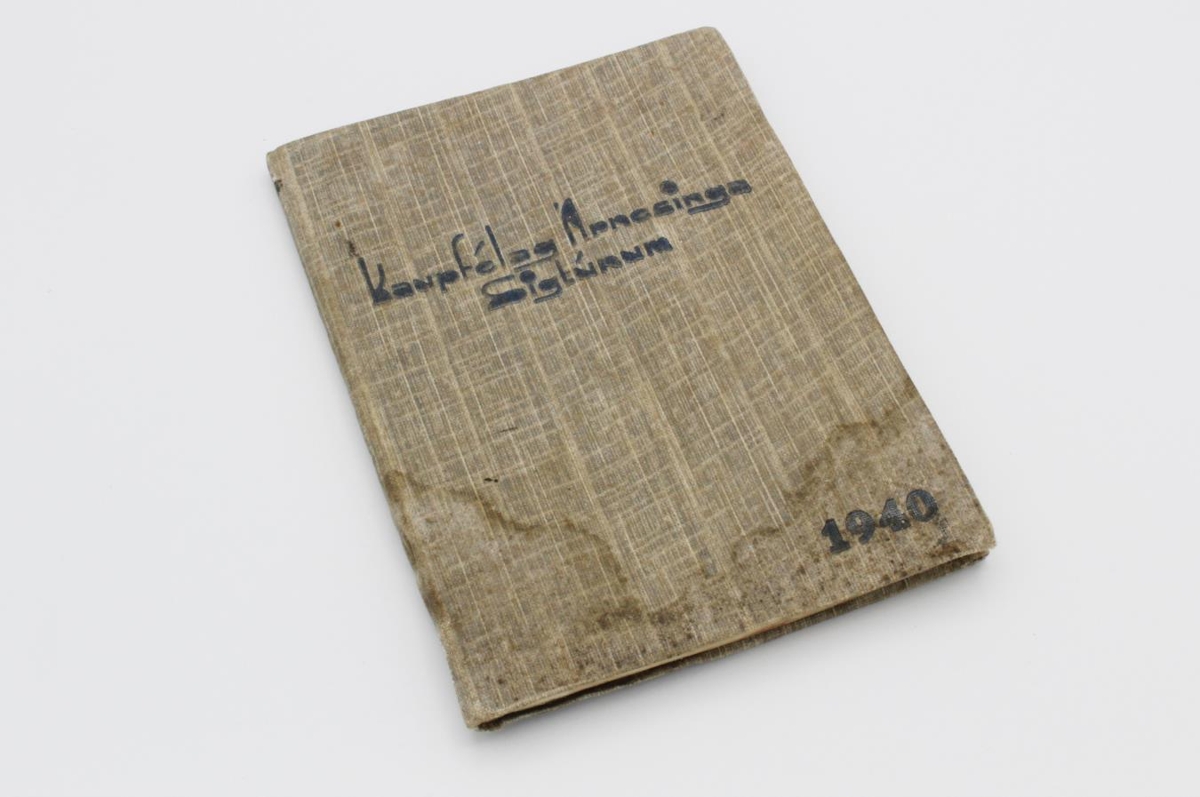 Innbundið, grábrúnt vasakver með almanaki frá Kaupfélagi Árnesinga, Sigtúnum. 1940. Merkt Steinskot á fyrstu síðu. Bókin er þéttskrifuð.