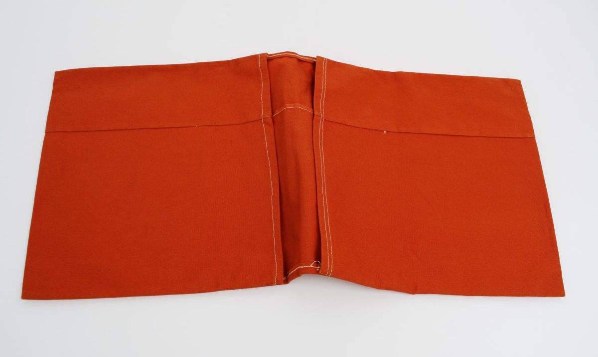 Rauður tauvasi. Ekki er ljóst í hvaða tilgangi hann var notaður, hugsanlega til að geyma tímarit.