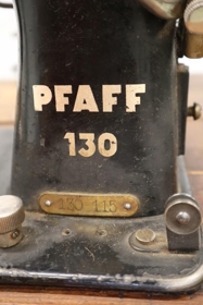 Saumavél, PFAFF 130-115. Ser.nr. 3.215.719. Zik zak saumavél með nálarhöldu fyrir 3 nálar. Framleidd árið 1936.